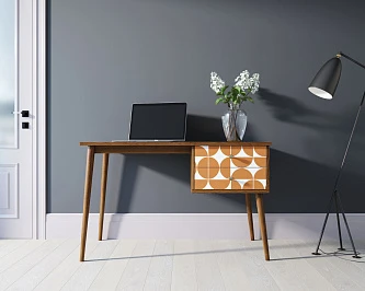 Стол рабочий "Berber" принт 2 с одной тумбой арт BB20/Print_02