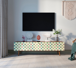 Комод под TV "Berber" имеет три глубоких и вместительных ящика на шариковых направляющих. Ширина комода 180 см, что позволяет достаточно эстетично смотреться с широкоформатными телевизорами. Яркий принт сделает комод акцентом любого интерьера.