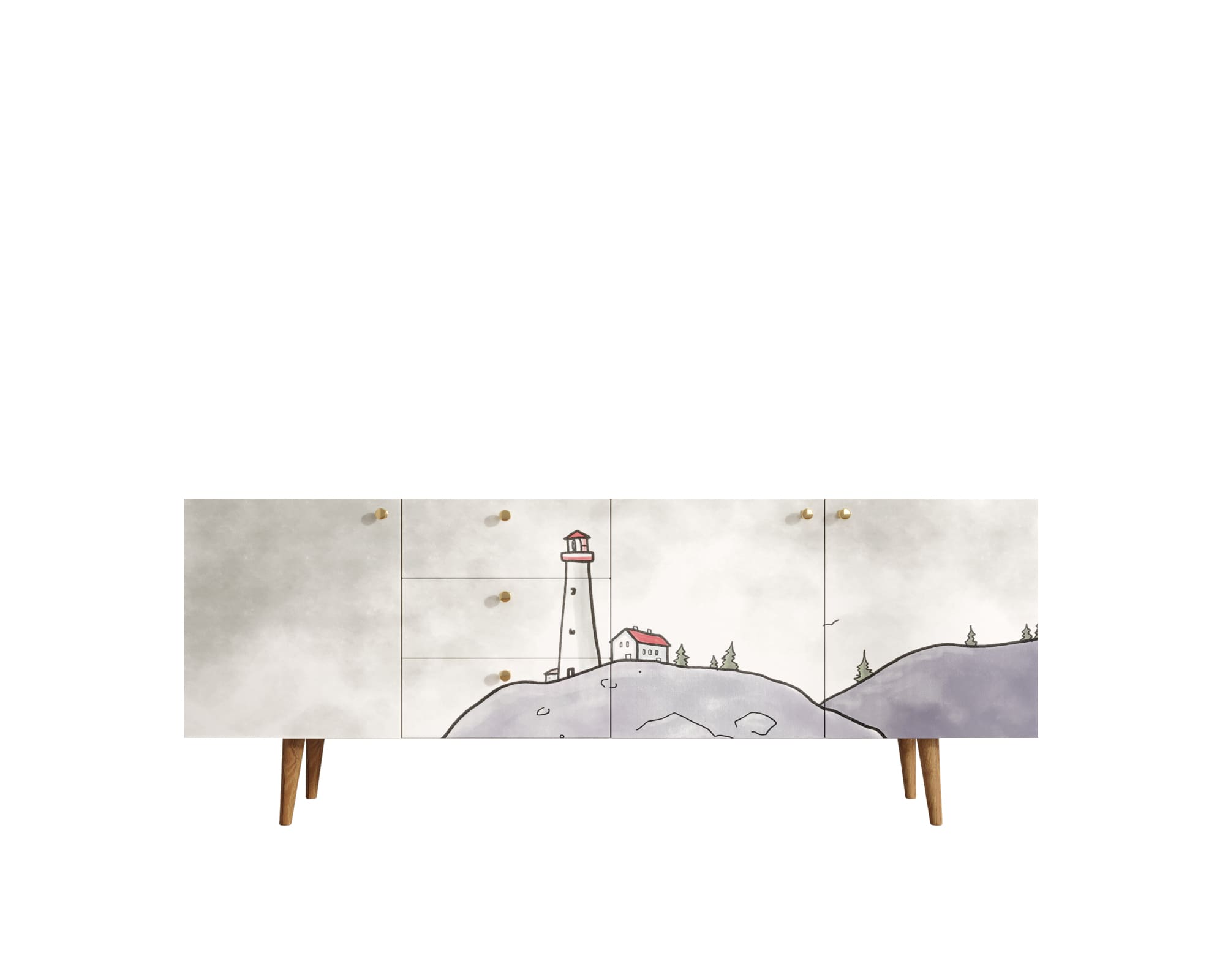 Корпус и ящики изготавливаются из ЛДСП австрийской компании "EGGER". Ножки мы делаем из массива ясеня и крепим на стальную пластину, на дверях петли с доводчиком а на ящиках шариковые направляющие. Принт на фасады наносится принтером специальными УФ - чернилами.