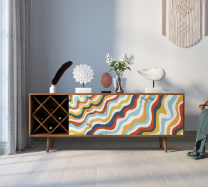Комод "Berber" удлиненный с бутылочницей принт 21. Удлиненный комод "Berber" снабжен бутылочницей, тремя небольшими ящиками, а за дверцами пространство разделено полкой. Комод функционален и может служить тумбой под TV, дополнением к дивану в гостиной, который зонирует пространство комнаты или быть самостоятельным арт-объектом.