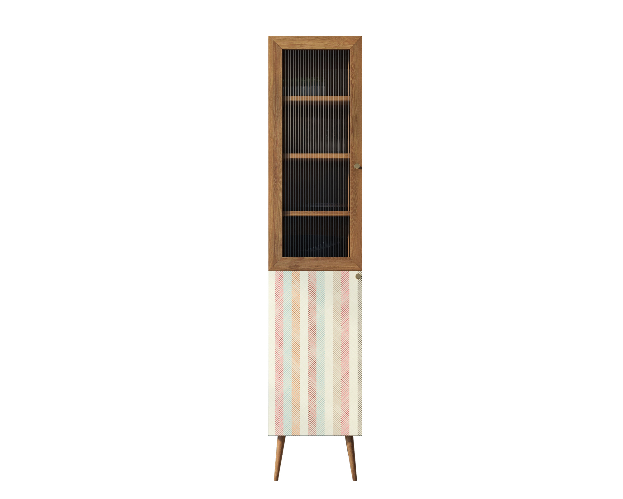 Узкий комод "Berber” (принт 45) оснащен двумя дверцами: сверху она стеклянная с рамой из массива дерева, снизу — выполнена из ЛДСП и украшена стильным принтом в скандинавском стиле. Благодаря уникальной технологии нанесения рисунка он не выгорит и не сотрется даже спустя десятки лет.