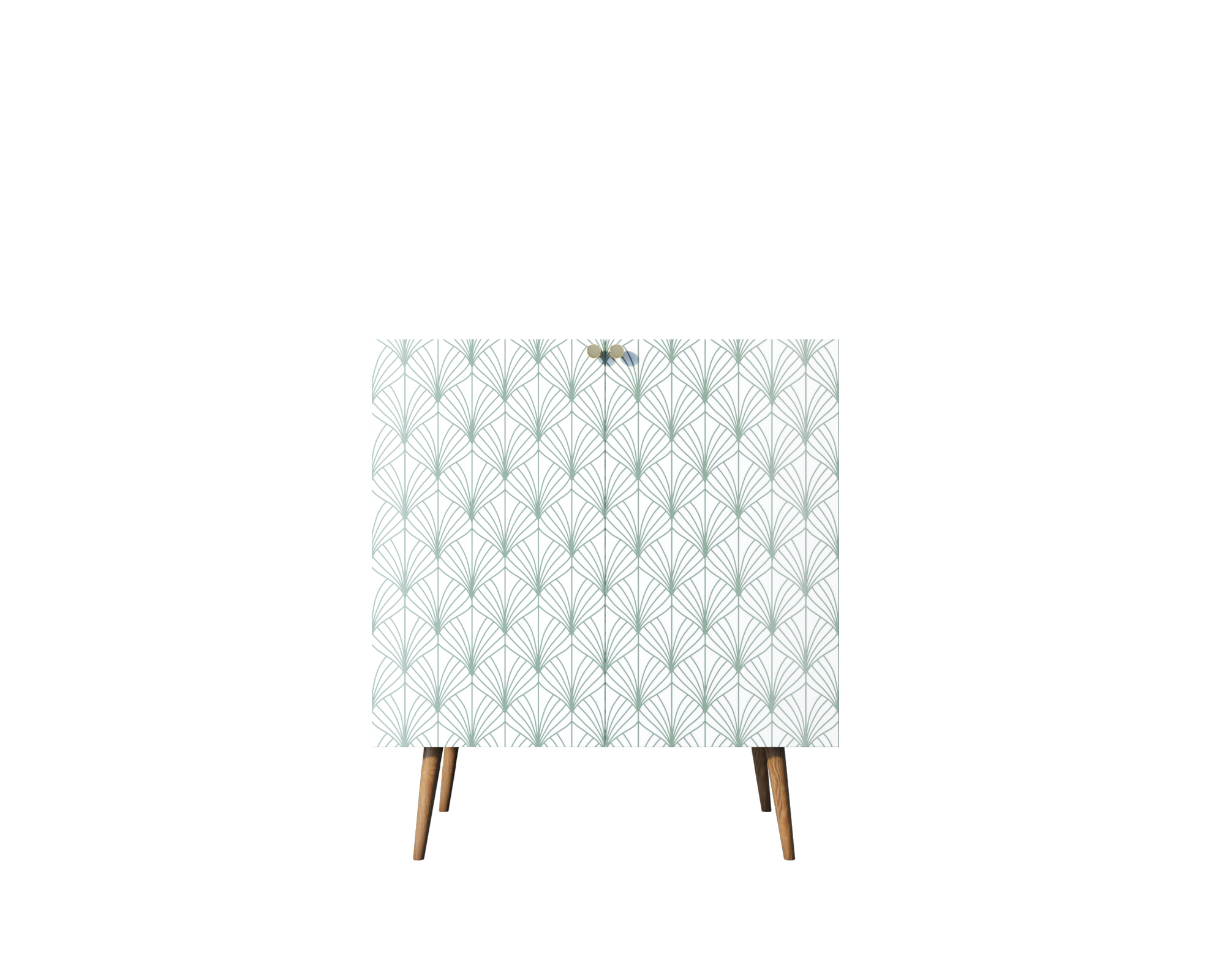 Компактная модель комода скрывает за дверками нишу, разделенную на две части полкой регулируемой по высоте. Корпус прямоугольной формы, а ножки изготовлены из прочного массива ясеня. Комод привлекает внимание спокойным принтом на фасаде.