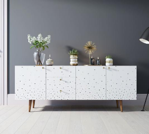 Комод "Berber" удлиненный принт 15. Удлиненный комод "Berber" снабжен тремя небольшими ящиками, а за дверцами пространство разделено полкой. Комод функционален и может служить тумбой под TV, дополнением к дивану в гостиной, который зонирует пространство комнаты или быть самостоятельным арт-объектом.