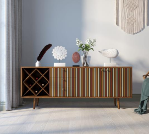 Комод "Berber" удлиненный с бутылочницей 20 принт. Удлиненный комод "Berber" снабжен бутылочницей, тремя небольшими ящиками, а за дверцами пространство разделено полкой. Комод функционален и может служить тумбой под TV, дополнением к дивану в гостиной, который зонирует пространство комнаты или быть самостоятельным арт-объектом.