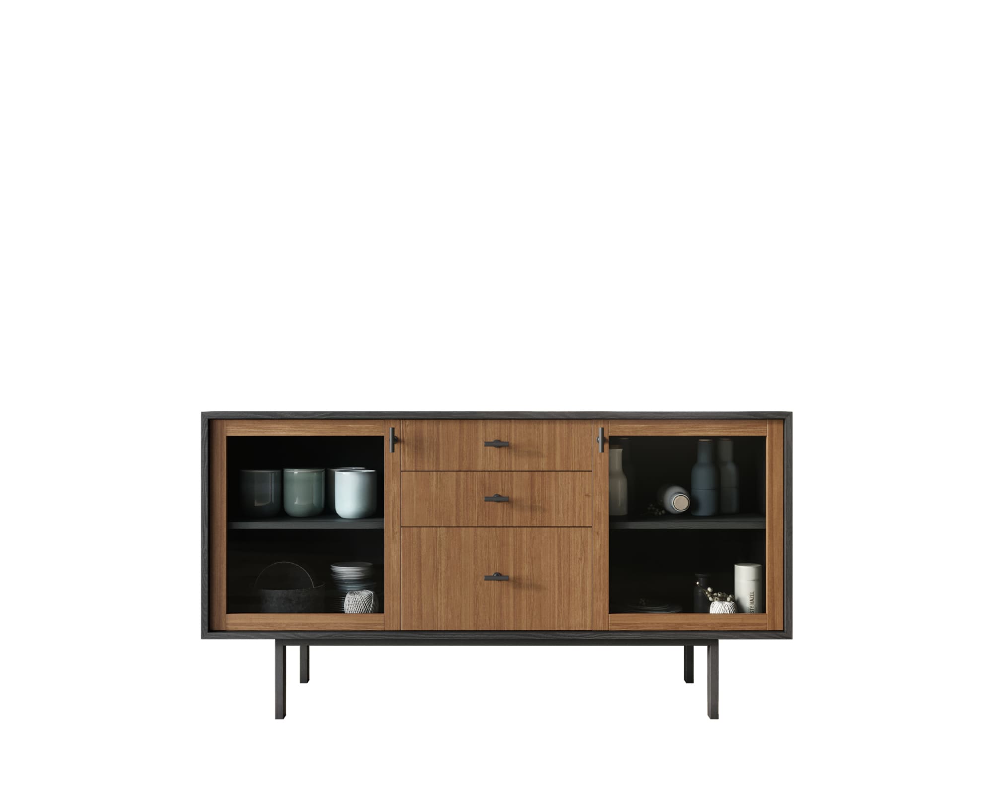 Комод две стеклянные дверки и три ящика "Emerson" арт EM14
