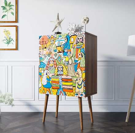 Комод на высоких ножках "Berber" принт 1. Комод "Berber"на высоких ножках из массива ясеня и дизайнерским принтом на фасаде будет акцентной вещью в вашем интерьере. Используйте его в прихожей, гостиной или спальне в качестве небольшого, но практичного места для хранения мелочей.