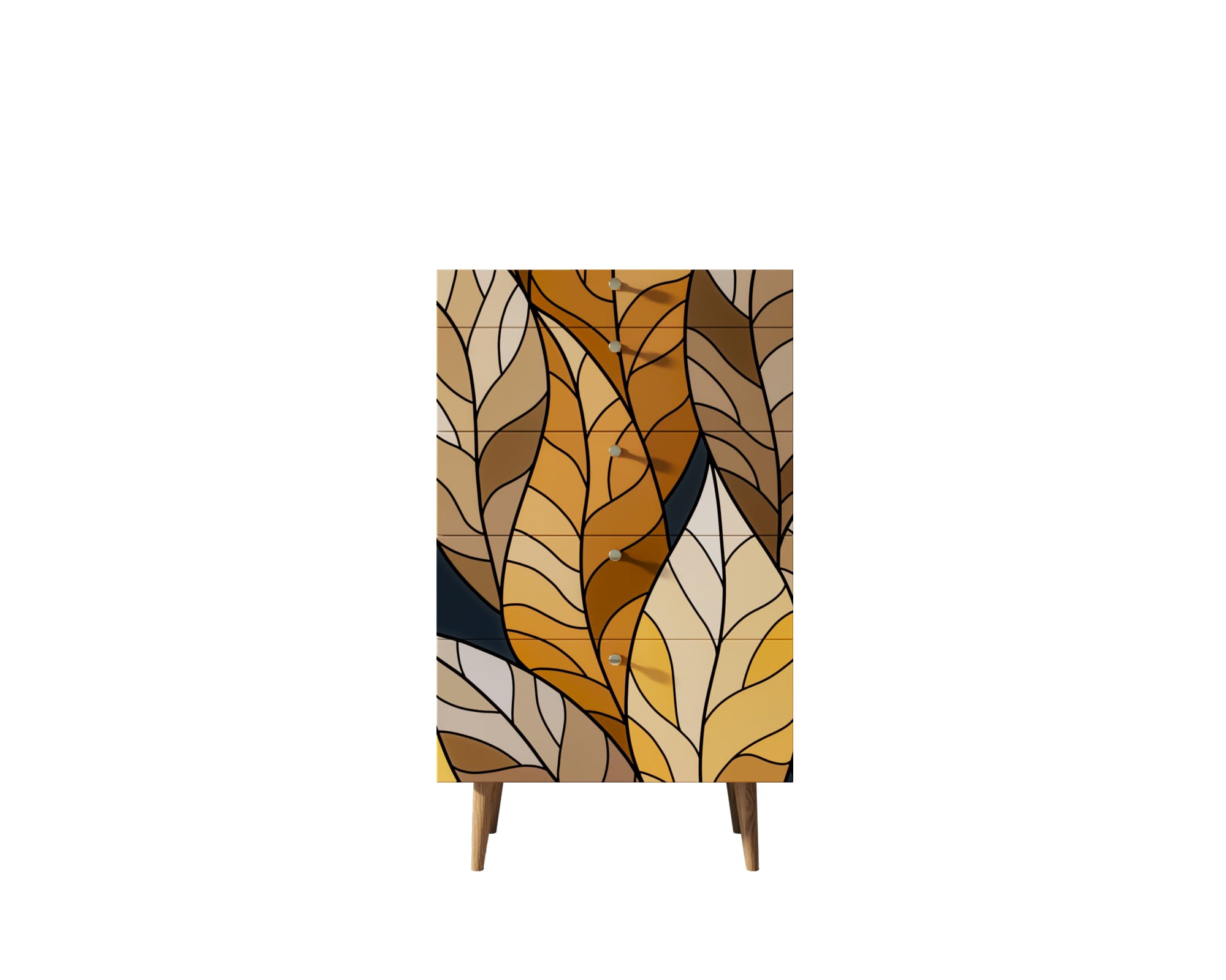 Комод высокий "Berber" принт 08. Высокий комод "Berber" имеет 5 выдвижных ящика на металлических направляющих. Комод достаточно высокий и узкий, что позволяет его применять практически везде, так как он не займет много места - спальня, гостиная, прихожая или в детской. А ящики позволят навести порядок и спрятать все мелочи за стильный принт.
