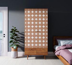 Двухстворчатый шкафы "Berber" имеет два глубоких, выдвижных ящика на шариковых направляющих и два отделения за дверками. Слева за дверью располагается съемная штанга, а справа три полки. Шкаф достаточно функционален и не займет много места, ведь ширина всего 90 см. Можно разместить в спальне или прихожей.