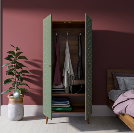 Шкаф малый двухстворчатый "Berber" принт 12. Шкаф "Berber" имеет малые формы и отлично подойдет для детской комнаты или для компактной прихожей. Ножки выполнены из массива ясеня и закреплены на металлическую пластину. Двери на доводчиках скрывают пространство для вешалок и нижнюю полку для вещей.