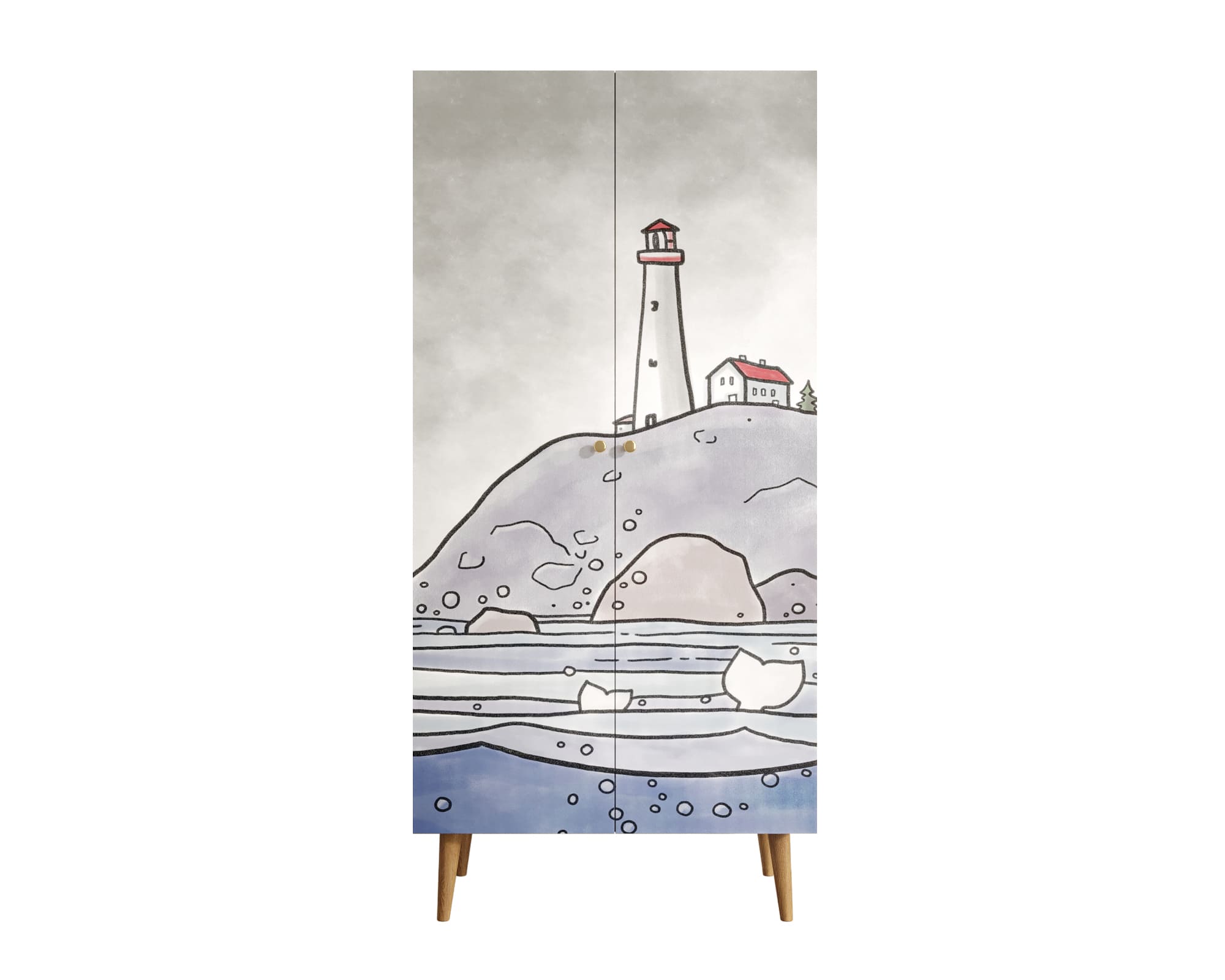 Шкаф малый двухстворчатый "Berber" принт 3. Шкаф "Berber" имеет малые формы и отлично подойдет для детской комнаты или для компактной прихожей. Ножки выполнены из массива ясеня и закреплены на металлическую пластину. Двери на доводчиках скрывают пространство для вешалок и нижнюю полку для вещей.