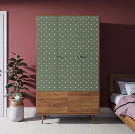 Трехстворчатый шкаф "Berber" имеет четыре вместительных, выдвижных ящика на шариковых направляющих и два больших отделения за дверками. Слева за дверкой располагаются три полки, а справа отделение со съемной штангой. Шкаф достаточно функционален и при своих компактных размерах, в ширину всего 115 см, способен вместить достаточное количество вещей.